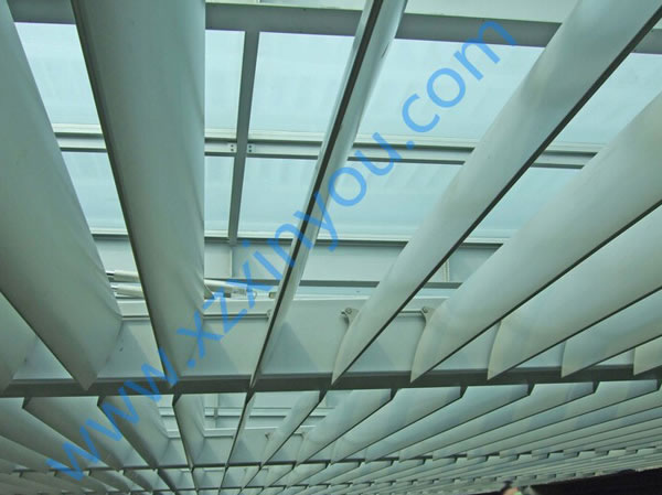 中空梭型百葉窗遮陽板采用中空結構,具有強度高、跨度大的特點,通過與玻璃幕墻的配合,可實現遮陽、采光、裝飾建筑物的效果。 梭型百葉可以橫向、豎向安裝(或固定葉片),通過電機帶動葉片的旋轉(0°~120°),從而改變室內采光效果,達到遮陽節能的目的。葉片尺寸和顏色可以根據客戶要去定制。