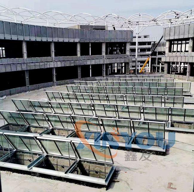 □天窗啟閉易群組控制,每組天窗數(shù)根據(jù)天窗數(shù)量及控制距離決定。其***開啟角度為70°。